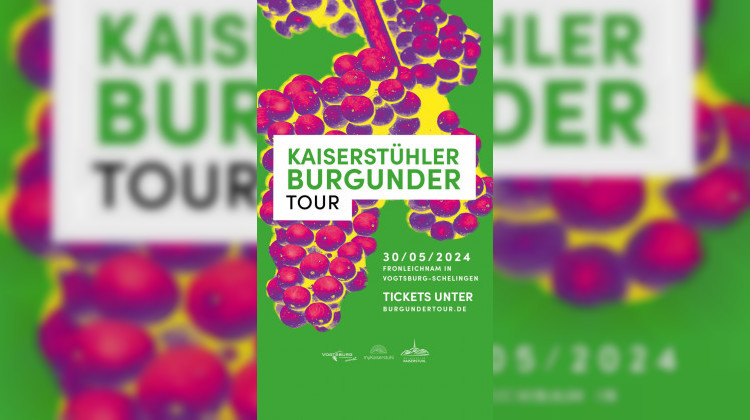 Die heißbegehrte Kaiserstühler Burgunder Tour geht in die fünfte Runde am 30. Mai 2024 (Feiertag – Fronleichnam). Auf 5 Kilometern erkunden wir die besten Weinlagen rund um das charmante Schelingen. An neun Stationen entlang der Route wartet die faszinierende Vielfalt der Vogtsburger Burgunderweine darauf, entdeckt zu werden. Über 25 Top-Weingüter, Winzergenossenschaften und Gastronomen aus Vogtsburg versprechen einen Tag voller kulinarischer Höhepunkte. Und als krönender Abschluss lassen wir die Afterparty im stylischen Weingut Schätzle in die Abendstunden übergehen.